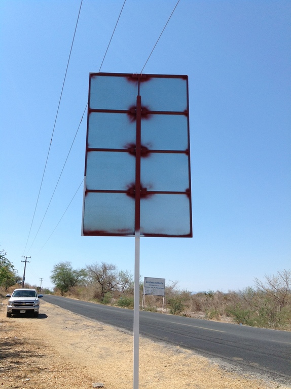 •Placa de acero galvanizado calibre 18 de 1.8mts de base X 3.0mts de altura con impresión en vinil.